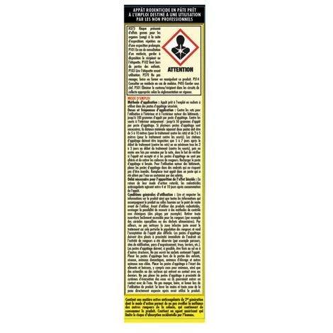 Acto pate rats souris 150g de la marque ACTO. Contre les rats noirs, rats d’égouts et souris. Appât sous forme de pâte molle huilée imprégnée de substances alimentaires très attirantes. Contient un puissant anticoagulant et un amérisant.