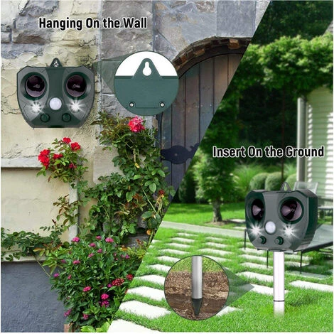 | répulsif pour animaux à ultrasons à énergie solaire, dissuasion électronique extérieur imperméable à l’eau pour le chien, le rat, le cerf, le raton laveur, oiseau, serpent, animal contrôle repeller. Avec le mouvement PRI capteur détecte les animaux se déplacer et 5 fréquence d’onde réglable et la lumière flash, double voie de contrôle physique des animaux repeller, sécurité et respectueux de l’environnement. Fonctionnalités: Ultrasons & Strong flash — ultrasons puissant jumelé à une forte flash, lecteur humanitarianly loin des animaux sauvages indésirables, protéger votre vie d’être dérangé. Fréquence réglable et la sensibilité peuvent aider à contrôler la taille différente des animaux. Solaire & USB Powered — expulseur animal avec un grand panneau solaire, qui peut être en permanence chargé par la lumière du soleil suffisante, ou l’utilisation Cabel USB de charge pour la charge auxiliaire insuffisante lorsque la charge solaire ne suffit pas pour fournir une activité excessive des animaux. Grand Champ d’application Plage de travail — Avec un puissant capteur de mouvement PIR qui peut détecter jusqu’à 30 pieds (selon la taille des animaux) et 180 degrés, comme l’animal entrer dans la gamme de protection, l’ultrasons sera activé. Outdoor Design imperméable — plastique solide et étanche, il suffit d’insérer l’animal à ultrasons repeller dans le sol au sol, grand pour le travail sous tous les temps, résistant à l’eau, coupe-vent, étanche à la pluie. Protection de l’environnement humain — L’énergie solaire à ultrasons animaux Repeller se débarrasse de presque tous les animaux à travers l’émission d’un mélange de sons à ultrasons, effrayer les animaux intrus de quitter la zone. Seulement pour les animaux sans aucun effet chimique, il est délivré uniquement à la fréquence à ultrasons les chassèrent, alors il n’y aura pas de mal au corps humain. Spécification: La couleur verte Matériel: ABS et composants électroniques Niveau imperméable: IP44 Alimentation: 3 piles rechargeables 5V 500mA angle du capteur infrarouge: 110 degrés Gamme de fréquences: 13.5kHz-45.5kHz Distance de détection: jusqu’à 30ft selon la taille des animaux La fréquence 13.5kHz-19.5kHz: Repel souris, les rats, les chiens, les renards, les martres, etc. 19.5kHz-24.5kHz: Repousser les chats, les ratons laveurs, blaireaux, shunks etc. 24.5kHz-45.5kHz: Repousser les chauves-souris, oiseaux, rongeurs, etc. Une forte lumière clignotante Repel raton laveur, le sanglier, martre etc. 13.5kHz-45.5kHz pour repousser tous les animaux ci-dessus, et allumer la lumière clignote forte Liste de colisage: 1 * ultrasons Repeller animaux 2 * Support Connecteur 2 * Pôle de montage 1 * Câble USB |