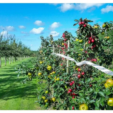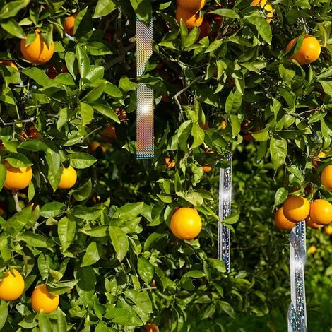 Ruban réfléchissantes pour Oiseaux, la lumière éblouissante du soleil se reflète dans toutes les directions à travers un motif spécial en losanges, stimulant les yeux des oiseaux pour les chasser. Lorsque le vent souffle, il fait aussi du bruit pour éloigner les oiseaux.