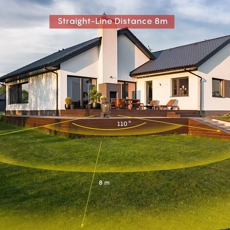 Très Sensible: Le capteur de mouvement de la chouette est activé lorsqu’un ravageur s’approche en plein air, dès que l’insecte approche, la LED de l’œil de la chouette clignote et une onde ultrasonique est envoyée pour éloigner l’animal cible.