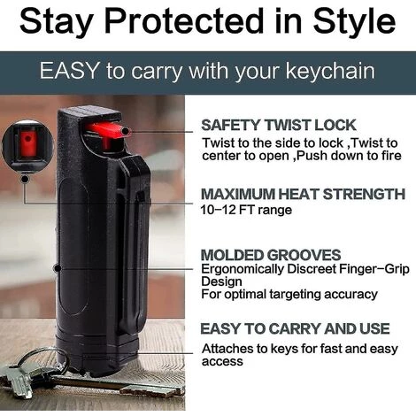[Portée de 10 pieds et 25 rafales] : le spray au poivre d’autodéfense a une portée impressionnante de 10 pieds (3 m) et 25 rafales (jusqu’à 5 fois celle des autres marques), avec un débit d’air puissant pour réduire le retour du vent. Gas pimienta defensa personal peut résister à de multiples menaces à une distance de sécurité de 10 pieds (3 mètres). Le spray au poivre pour l’autodéfense peut vous donner suffisamment de temps pour quitter les lieux et demander de l’aide. [Accès facile dans les situations stressantes] : le spray au poivre de la police offre un accès rapide et instantané. le gaz lacrymogène utilise un verrou à gâchette renforcé pour empêcher toute libération accidentelle et peut être stocké en toute sécurité dans un portefeuille ou un sac à dos. La prise en main des doigts peut améliorer votre prise en main et votre capacité de visée, de sorte que vous pouvez toujours faire attention aux menaces. [Identifier les attaquants] : le spray au poivre avec colorant est approuvé par la police et les civils. Le spray lacrymogène pour l’autodéfense contient un colorant ultraviolet invisible qui aide à identifier les suspects. Le spray au poivre 3 en 1 laissera un résidu durable pour soutenir l’enquête et l’identification, permettant aux forces de l’ordre d’identifier les attaquants. , Même s’ils essaient de le laver. [Formule puissante] : le spray d’autodéfense comprend l’autodéfense en spray au poivre d’intensité maximale qui peut provoquer une détresse respiratoire et une toux, une vision altérée et une forte sensation de brûlure de la peau de l’attaquant, vous permettant de fournir votre protection personnelle contre de multiples menaces à une distance de sécurité de 10 pieds (3M) ._