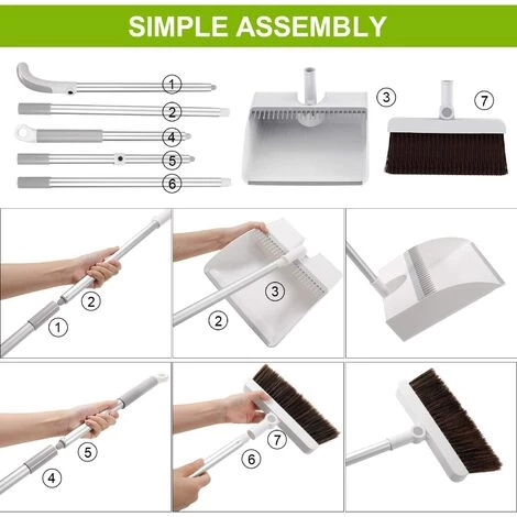 [Ensemble de balai et plumeau à long manche] La pelle à balai à long manche est en alliage d’aluminium et peut être allongée jusqu’à 45″. Pas besoin de se pencher pour nettoyer, très confortable et relaxant. Vous pouvez utiliser le balai pour nettoyer les angles morts sur le plafond et les sanitaires.[Facile à assembler et verrouillage magnétique] Conception détachable, il vous suffit de passer 1 à 2 minutes pour terminer l’assemblage. Notre balai et notre pelle sont combinés à une attraction magnétique, qui est plus ferme et plus fiable, et plus pratique à utiliser.