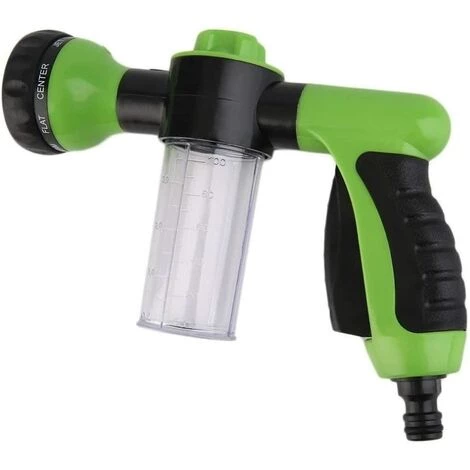 Pulvérisateur à Embout Accessoire de Tuyau de Jardin avec Réservoir pour Savon/FertilisantFacilitez-vous le lavage de votre voiture grâce à cet accessoire de tuyau qui est un pulvérisateur multifonction à embout avec un réservoir de 100 ml pour le savon. Remplir le réservoir avec du savon liquide et utiliser le bouton pour régler la quantité à mélanger dans pulvérisateur, mettez de la mousse sur votre voiture sans utiliser un seau et une éponge. Vous pouvez également remplir le réservoir avec du fertilisant et l’utiliser pour nourrir facilement vos plantes.Le bouton sur le dessus contrôle également le débit d’eau, le déclencheur se bloque sur place de sorte que le flux est constant et vous n’avez pas à garder la main sur l’accessoire.CaractéristiquesEmbout de pulvérisation à 8 modes: Douche, Brouillard, Cône, Rinçage, Flot, Plat, Centrer, JetRéservoir de 100 ml pour savon ou fertilisantDébit d’eau réglable avec 3 modes de mélange de savon Mélangez le savon/le fertilisant directement dans l’eau pour un lavage de voiture/arrosage des plantes plus rapide et plus facileDéclencheur qui se verrouille pour un débit d’eau constantContient1 x Embout de Tuyau pour Mousse