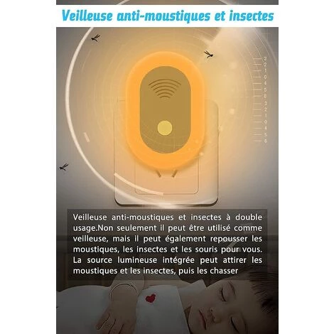 Protection multiple à 360° : le répulsif anti-moustiques à ultrasons attire les moustiques grâce à la source de lumière auxiliaire de la veilleuse, génère des ondes ultrasonores et électromagnétiques, détruit leur système sensoriel, leur système nerveux et leur fonction de reproduction. Afin d’obtenir un effet anti-moustique efficace à long terme.