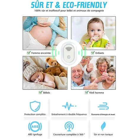 Dites adieu aux méthodes anti-moustiques traditionnelles : pas de produits chimiques, non toxiques et sans goût, silencieux et sans rayonnement ! Les ultrasons et les ondes électromagnétiques transmises n’ont aucun effet sur les femmes enceintes, les enfants et les animaux domestiques.