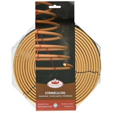 Grande spirale à la citronnelle idéale pour vous accompagner lors de vos soirées d’été !Vous découragerez les insectes piqueurs et les moustiques en accrochant cette citronnelle suspendue près de la terrasse. Les moustiques et autres insectes n’aiment pas l’odeur de la citronnelle brûlante. Ainsi, la citronnelle va permettre de les repousser sans pour autant les tuer, le parfum dégagé permet d’éloigner les nuisibles.Caractéristiques :- Avec cordon de suspension – Décourage les moustiques et autres insectes – Combustion de 32 heures – Dimensions : L 30 x l 30 x H 21,5 cm – Matières : Poudre de bois de Ixonanthes, Poudre de bois d’orme, amidon de maïs, huile de citronnelle, fer, coton