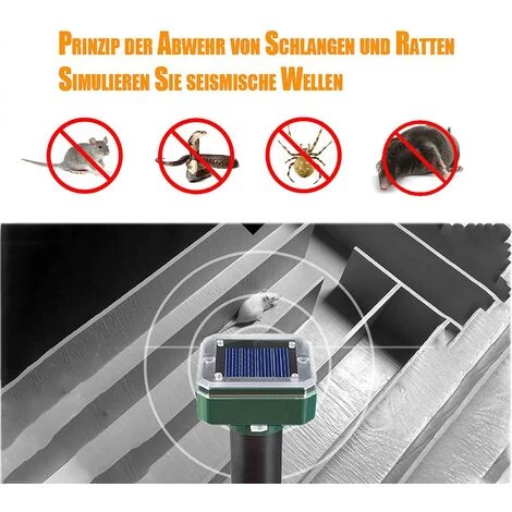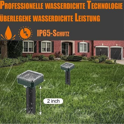 Installation et utilisation : placez le répulsif solaire contre les taupes directement à l’endroit approprié où la lumière se produit. Poussez le piquet à la main dans le sol. Nous vous recommandons d’installer le répulsif anti-taupes tous les 30 mètres au-dessus de la pelouse pour obtenir une performance optimale.