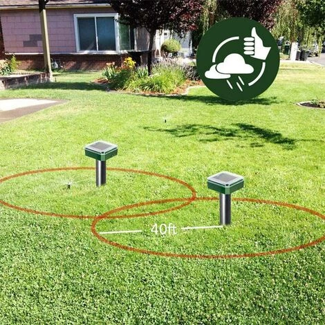 Facile à utiliser : insérez l’appareil dans le sol. Assurez-vous que la plaque du panneau solaire est au moins 5,1 cm au-dessus du sol. Pas besoin de connexion de câble. Allumez l’interrupteur ON et profitez de l’environnement sans parasites que vous méritez.