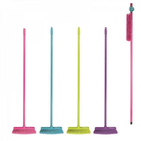 balai classique couleur, 4-fois assorti_x000D_- Assortiment: menage, menage +_x000D_- Marque: JE CHERCHE UNE IDEE_x000D_- Dimension (cm): 127x28x6_x000D_- Matériaux: plastique – pp_x000D_- Couleurs: rose bleu vert violet_x000D_Ce balai classique mais coloré vous permettra de nettoyer rapidement les sols poussiéreux, vous serez amusé par le petit message illustré au niveau de la brosse. Hauteur : 127 cm.