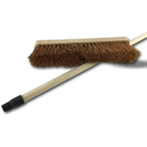 Balai de ménage en fibres de coco naturel long | Longueur 37,5 cm | Douille vissante plastique | Manche bois 1,25 m | Kibros 211726M