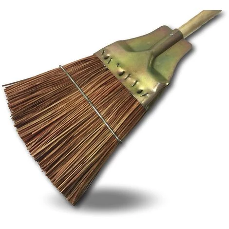 - Cet outil est fabriqué en fibres en piassava (rigides). Il est muni d’un support triangulaire en tole bichromé avec une douille en métal vissante pour le manche en bois de diamètre 27 mm
