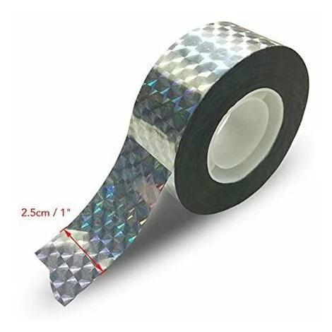 Taille : longueur totale : 80 m. Largeur : environ 2,5 cm. Quantité : 1 bande effrayante pour oiseaux.
