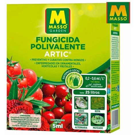 Fongicide polyvalent systémique 5ml. prévient le développement des maladies des plantes ornementales, horticoles et fruitières et arrête l’infection pendant la période d’incubation. (action curative) 231560 massó