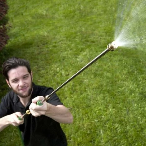Conseils d’utilisation pour une pulvĂ©risation puissante (environ 3 mètres) : dĂ©vissez la buse situĂ©e Ă l’extrĂ©mitĂ© de la lance, dĂ©vissez la pièce rouge qui se trouve Ă l’intĂ©rieur de la buse et retirez lĂ revissez la buse complètement, vous obtiendrez un jet plus puissant pour un arrosage en hauteur.