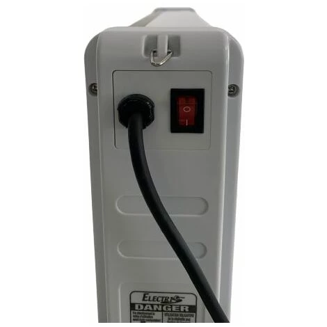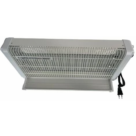 La lumière émise par les 2 tubes fluorescents attire les insectes vers la grille métallique haute tension (1800 V sous quelques mA) pour les foudroyer.