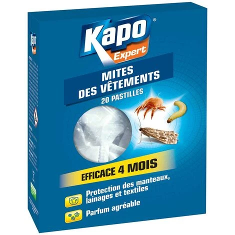Les Pastilles anti-mites, larves et acariens protègent efficacement vos manteaux, lainages, et textiles pendant toute une saison tout en diffusant un parfum léger.Ces pastilles insecticides de dernière génération sont disposer aux endroits à protéger (tiroirs, coffres, armoires…).Elles ne tachent pas.