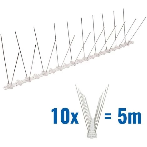 - Livraison : 5 mètre (10 pièces à 0,5 m) 2 rangée pics anti pigeons sur polycarbonate