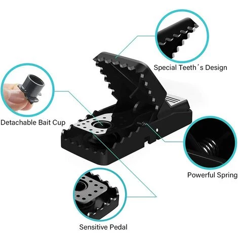 Puissant et Efficace : Piège à rats avec une conception à double ressort et une forte force de morsure. Nos pièges à souris sont fabriqués en plastique ABS de haute qualité, respectueux de l’environnement, robuste. Grâce au ressort robuste et sensible intégré, notre piège à souris est plus efficace et sensible que les pièges à souris traditionnels. Notre piège à souris peut réagir rapidement, tuer immédiatement les souris, et réduire la douleur de la mort.
