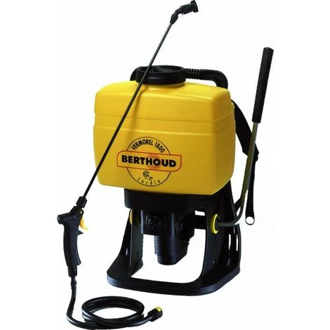 Pulvérisateur à dos Vermorel 1800 BERTHOUD Le pulvérisateur à dos Vermorel 1800 à une capacité de 16 litres. C’est le plus perfectionné du marché, essentiellement étudié et conçu pour des utilisateurs réguliers avec des grands jardins, vergers, arboriculture, etc … Caractéristiques produit Pulvérisateur à dos Vermorel 1800 BERTHOUD : Réservoir du pulvérisateur à dos Vermorel 1800 BERTHOUD: Capacité 16 L avec niveau de liquide visible du pulvérisateur à dos Vermorel 1800 Berthoud Armature dorsale ergonomique épousant parfaitement la forme du dos Double bretelle de portage réglable en longueur pulvérisateur à dos Vermorel 1800 Berthoud Levier de pompage réversible gauche/droite et à 2 positions rangement (position verticale) et travail (position inclinée) en démontant et remontant le levier. Pompe à membrane et à piston curviligne « hautes performances » (douceur de manipulation et faible rythme de pompage) Poignée de lance professionnelle de type « PROFILE » (confort et précision de visée) Tube de lance composite à haute résistance mécanique et chimique, elle mesure 60 cm de longueur, la lance possède 30 cm de jet donc elle peut atteindre une hauteur de 0.90 cm. Pour atteindre une hauteur plus longue, il existe des lances de 2,40 m et 3,60 m compatibles avec le pulvérisateur Vermorel 1800, la référence de la lance de 2,40 m est 280326, la référence de la lance de 3,60 m est 282447. Vous pourrez les trouver dans la catégorie produits complémentaires. Porte-buse universel réglable du pulvérisateur à dos Vermorel 1800 BERTHOUD Livré avec buse à turbulence et pastille 15/10e pour jet brouillard Pulvérisateur à dos Vermorel 1800 Berthoud Garantie : 5 ans. Produits complémentaires du pulvérisateur à dos Vermorel 1800 Berthoud: Venez retrouver tout les produits Berthoud dans le rayon: Maison et jardin, vous y trouverez un large choix de produits pour entretenir votre jardin.Pour toutes questions n’hésitez pas à nous contacter par téléphone ou email et notre équipe se chargera de vous répondre.