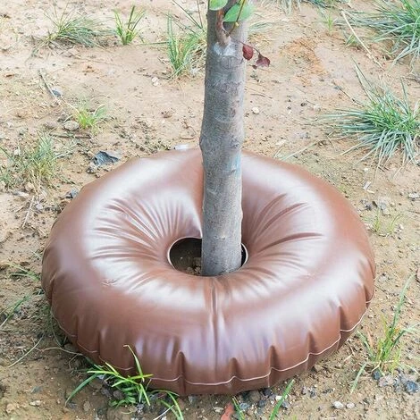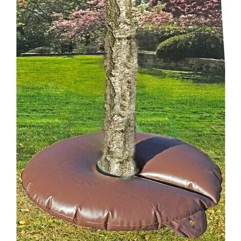 - L’anneau d’arrosage est placé autour du tronc / de l’arbuste, fixé à l’aide de la fermeture éclair, puis rempli d’eau propre par l’orifice de remplissage.