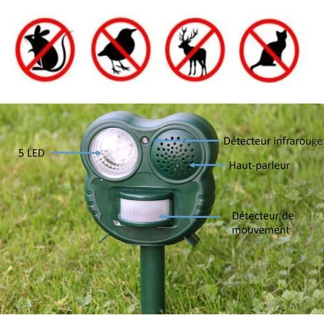 ChasseNuisibles – Répulsif Chien, Chat, Oiseau – Flash 5 LED -Détecteur de Mouvements