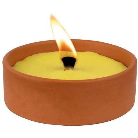 La bougie citronelle est dans un pot 100% en terre cuite qui sera donc réutilisable par la suite.