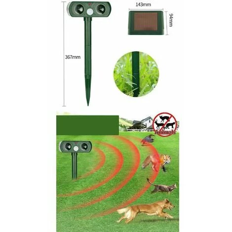 - Protection de l’Environnement – répulsif chat utilise des ondes ultrasonores et des LED clignotantes pour repousser les animaux sans nuire aux animaux ou causer des dommages environnementaux.Vous pouvez le placer où vous le souhaitez, par exemple: jardin, verger, ferme, etc. facile à utiliser