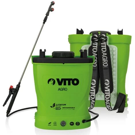 Découvrez un pulvérisateur dorsal à batterie LITHIUM RECHARGEABLE VITO de 12 V de 6 Ah avec une grande autonomie et une capacité de 16 L. Véritable équipier pour le désherbage de votre jardin, il saura vous satisfaire grâce à son poids à vide de 3.6 kg seulement, son confort de portage et son utilisation pour toutes applications. Sa pression de 6 bars et son débit de 3.1 L/min. vous permettent de pulvériser une grande surface pouvant atteindre 1200 m². Un témoin vous indique le niveau de charge de la batterie de l’appareil se situant au dos. Dans le pack vous trouverez un potentiomètre de réglage, une buse 2 en 1, une double buse conique et un chargeur.