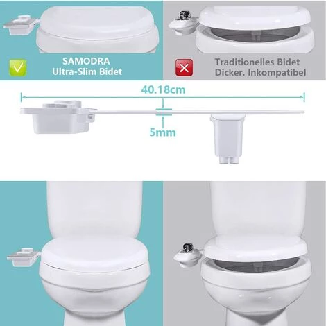 - Facile à installer : bidet non électronique avec accessoires de haute qualité, compatible avec la plupart des toilettes. Installation facile dans vos toilettes standard en deux parties en quelques minutes sans plombier. Dites adieu au papier toilette et bienvenue à un mode de vie plus propre et plus sain